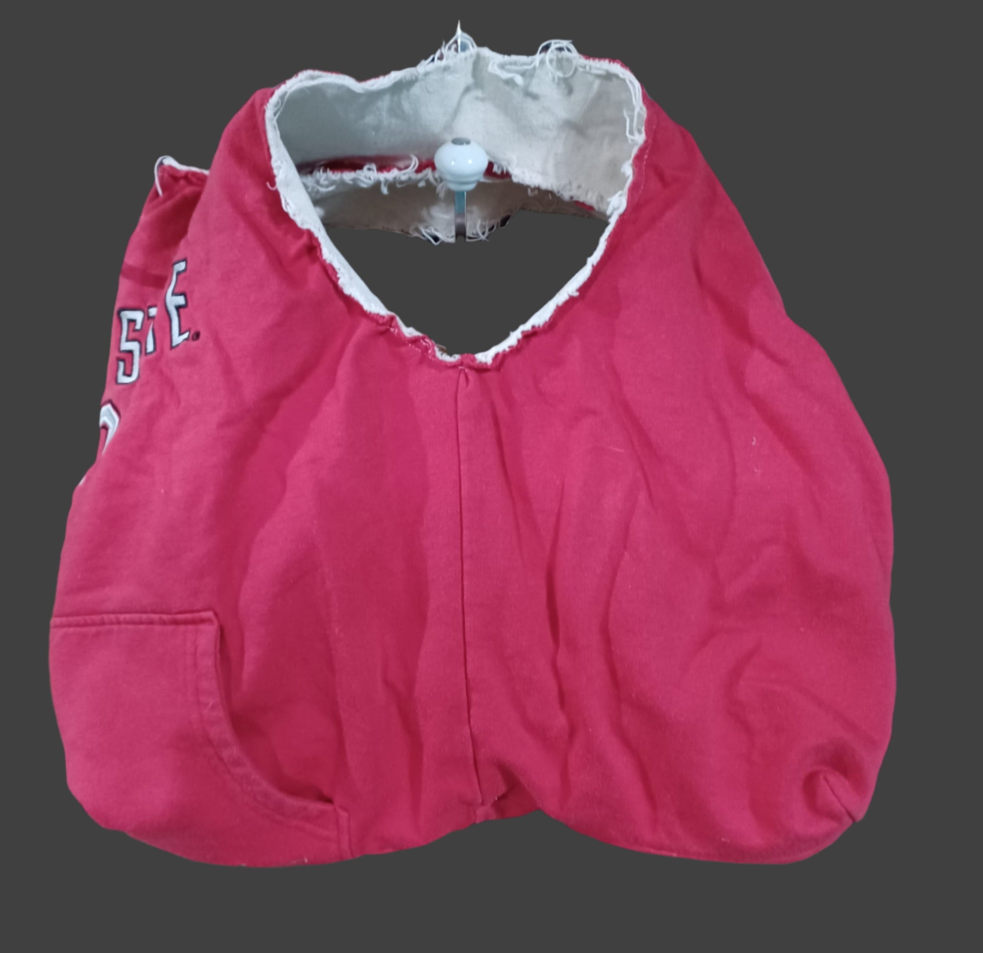 This OSU Buckeye's Sweatshirt Bag is the perfect way to show your team spirit while staying environmentally friendly! Created from a remade sweatshirt, this tote bag measures 19 inches across and 16 inches high (including handle). It's easy to carry over your arm, making it convenient for all your daily needs. Go Bucks!