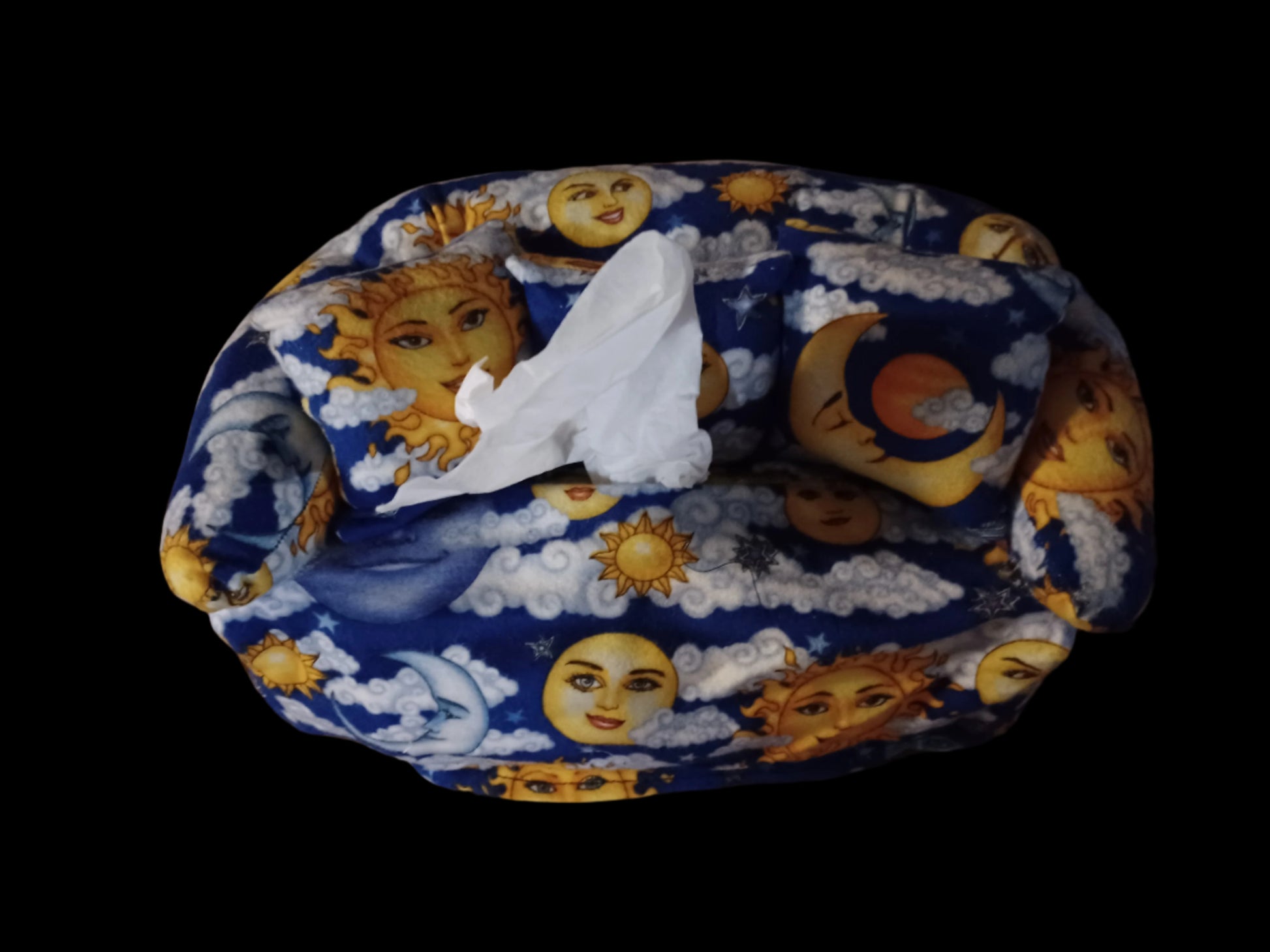 Enhance your decor with our Comfy Couch Tissue Box Cover! This unique cover features three plush cushions and fits a standard rectangular tissue box. It's perfect for any room in your home or office.